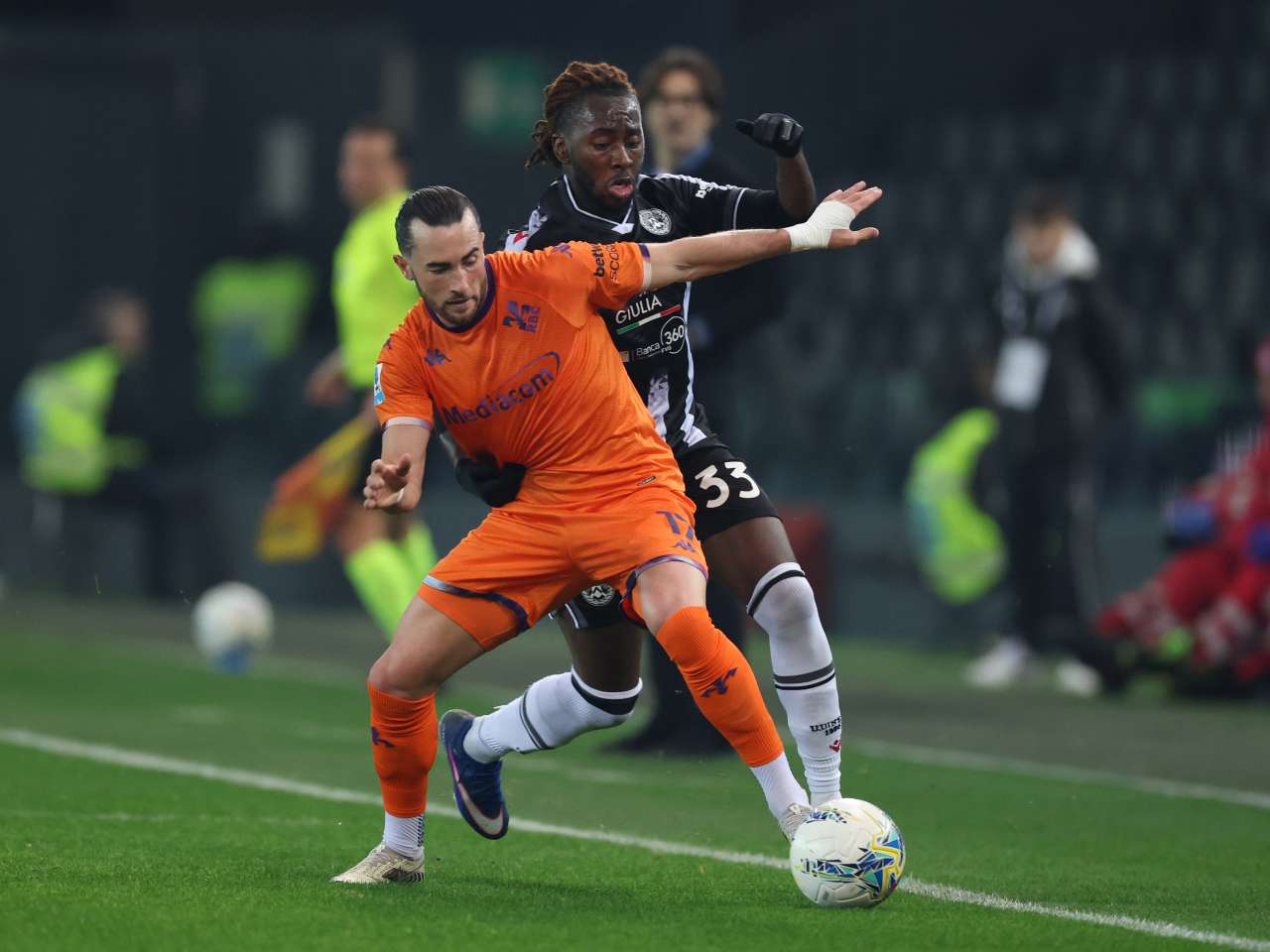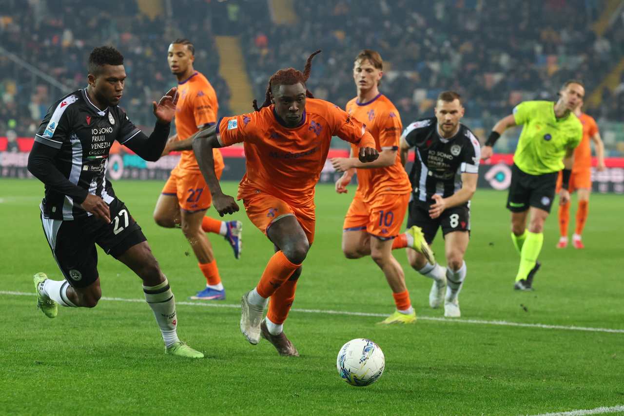 La partita si sblocca in avvio, al 10', quando Kabasele stacca indisturbato per insaccare di testa sull'angolo calciato da Zaniolo. La risposta dei viola arriva con un sinistro di Mandragora, che non inquadra lo specchio, ma anche l'Udinese non manca di pungere col rientrante Davis, fermato da De Gea poco dopo la mezz'ora. Il duello tra i due si ripete anche a inizio ripresa, sempre col portiere viola vincitore. Dopo vari tentativi il centravanti bianconero trova la gloria personale, procurandosi e trasformando un calcio di rigore al 64'. E' la rete che spegne i toscani, che nonostante i cambi effettuati da Vanoli non riescono più a rendersi pericolosi e incassano poi in pieno recupero il terzo gol firmato da Buksa.